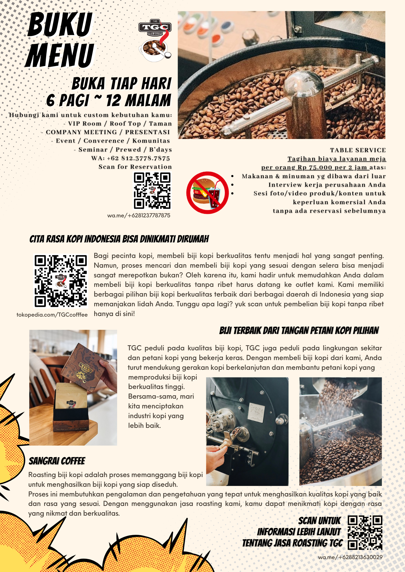 Coffee TGC yang beneran kopi, yang kopi-nya enak, yang ga pakai bahan pengawet, yang ga pake pemanis buatan…… ada minuman less sweet dan ada yang No Sugar juga!